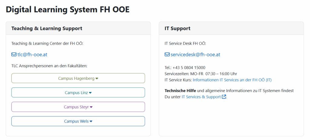 Zu Beginn des Arbeitsverhältnisses erhalten Sie Ihren FH-Account von der IT-Abteilung. Mit diesem Account haben Sie Zugriff auf die einzelnen Lernsysteme der FHOÖ.