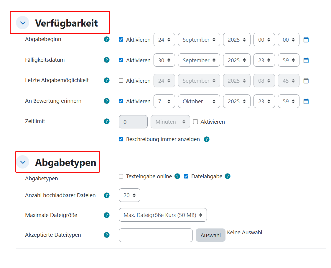 7. Wie kann ich den Studierenden die Dateiabgabe in Moodle ermöglichen?