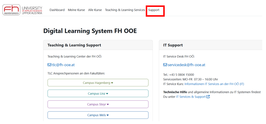Bei Problemen mit dem Moodle-Zugang, einem vergessenen Passwort oder wenn Sie zusätzliche Unterstützung benötigen, wenden Sie sich bitte an unseren Support-Service.